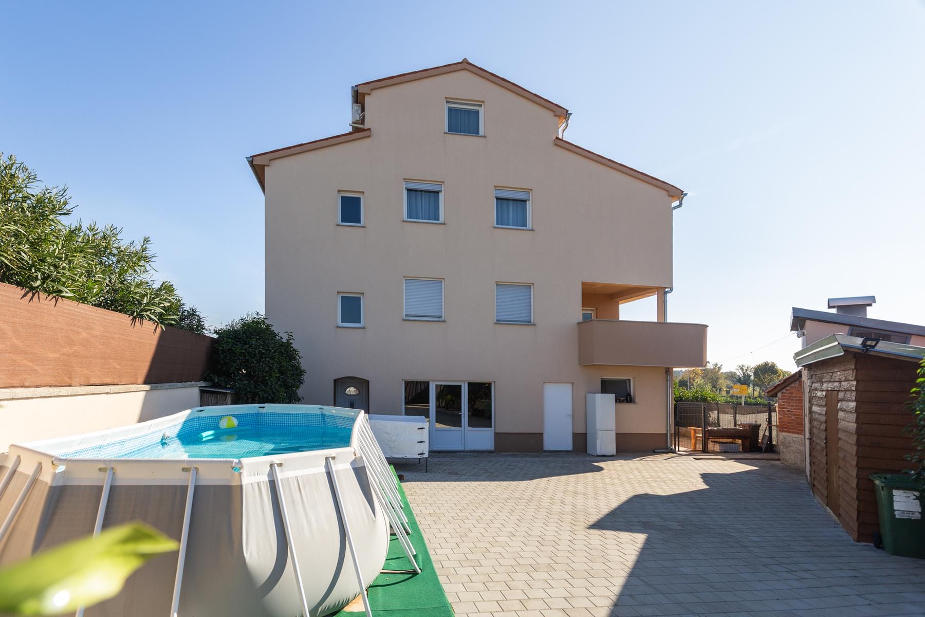 W spokojnej części Vodnjan znajduje się przestronny dom o powierzchni blisko 500 m², który został podzielony na cztery niezależne apartamenty. Ten unikatowy obiekt rozciąga się na czterech kondygnacjach, co zapewnia komfort i prywatność każdemu lokatorowi. Budynek usytuowano na działce o powierzchni ponad 600 m², co daje możliwość zagospodarowania przestrzeni wokół domu na ogród czy inne funkcje rekreacyjne.