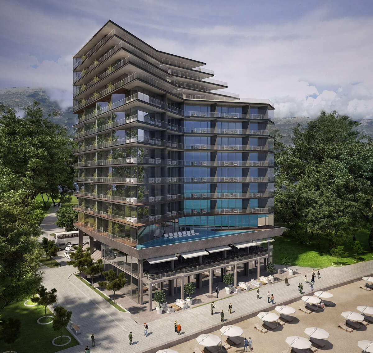 Luksusowe apartamenty w Condo Hotelu w niesamowitej lokalizacji, tuż przy pięknej plaży Becici, która została nagrodzona Grand Prix “Złota Palma” jako najpiękniejsza plaża w Czarnogórze plaża w Europie.