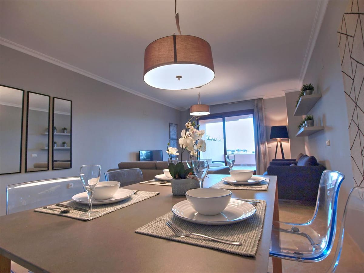 Wszystkie pokoje są wykończone w marmurze, a wnętrze stylowe i przemyślane. Dodatkowo, mieszkanie znajduje się w prestiżowej społeczności, oferując dostęp do klubu, siłowni, sauny oraz pola golfowego.