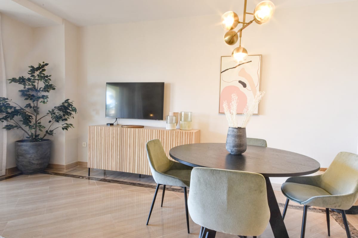 Przyjemność życia w Hiszpanii nie ma sobie równych. W Elvirii oferowane jest nowoczesne mieszkanie, zaledwie dwie minuty spacerem od pięknej plaży Las Cañas i renomowanego klubu plażowego Nikki Beach. Ta nieruchomość zachwyca wspaniałymi widokami oraz komfortowym wnętrzem, które sprawia, że każdy dzień staje się wyjątkową przygodą. Dzięki dogodnej lokalizacji, Stare Miasto w Marbelli znajduje się w odległości zaledwie 15 minut jazdy samochodem. Apartament zapewnia przestronny salon z jadalnią oraz dostęp do pięknego tarasu, idealnego do relaksu i delektowania się hiszpańskim słońcem. Wnętrza są starannie urządzone, a znakomite wyposażenie pozwala cieszyć się pełnią komfortu. Dla rodzin z dziećmi dostępne są baseny, które zapewniają chwile radości dla najmłodszych. To doskonała okazja dla tych, którzy pragną połączyć wygodę życia codziennego z bliskością naturalnego piękna.