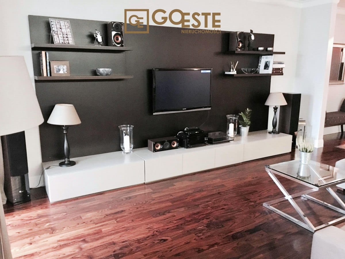 Mieszkanie w pełni wyposażone, wykończone w wysokim standardzie. W kuchni sprzęt AGD (lodówka, oddzielna lodówka na wino, zmywarka, piekarnik, płyta grzewcza). Jedna łazienka z wanną wolnostojącą, druga z prysznicem.