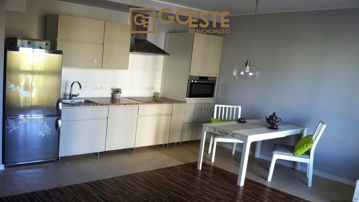 W kuchni sprzęt AGD (lodówka, zmywarka, piekarnik, płyta indukcyjna).