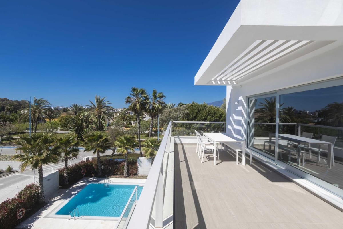 W sercu hiszpańskiej riwiery, w urokliwej miejscowości San Pedro de Alcántara, znajduje się wyjątkowy luksusowy penthouse, który czeka na nowego właściciela. Zaledwie 100 metrów od piaszczystej plaży oraz promenady, ta nieruchomość otacza się bogactwem lokalnych udogodnień. Spacer do centrum miasta odkrywa bogactwo hiszpańskiej kultury, sklepy, restauracje oraz rozrywkowe atrakcje. Ta nowoczesna inwestycja, zaprojektowana z dbałością o każdy szczegół, zachwyca przestronnym salonem z wyjściem na duży taras, idealny do relaksu przy zachodzie słońca. Otwarta, w pełni wyposażona kuchnia zachęca do kulinarnych eksperymentów. Na górnym poziomie czeka urokliwe solarium z przestrzenią do opalania, grillem oraz jacuzzi, co czyni tę przestrzeń wyjątkowym miejscem do wypoczynku.