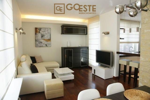 Mieszkanie w pełni wyposażone i umeblowane, wykończone w wysokim standardzie. W kuchni sprzęt AGD (lodówka, zmywarka, piekarnik, płyta grzewcza). Jedna łazienka z wanną, druga z prysznicem. W przedpokoju szafa wnękowa. Klimatyzacja.