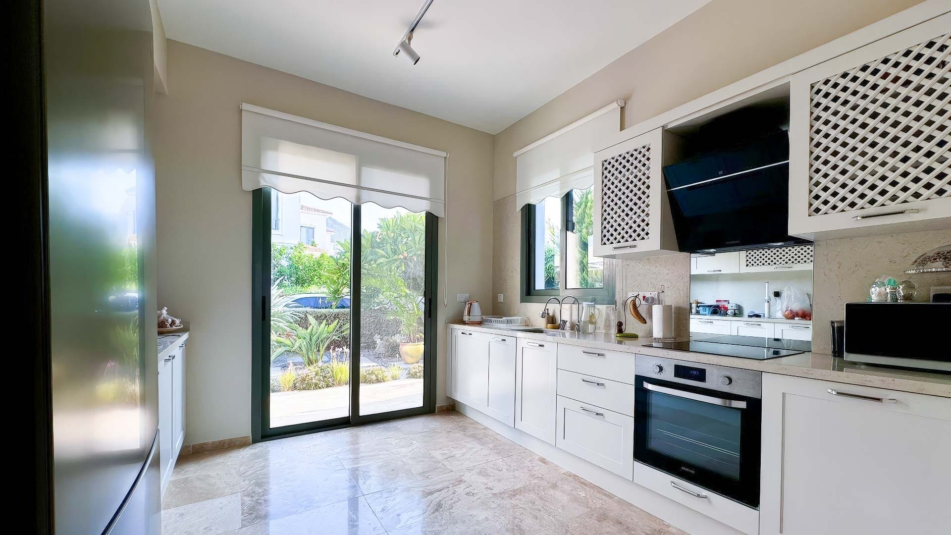 Prestiżowa dwupoziomowa willa o układzie 3+1 stanowi znakomity przykład połączenia komfortu i stylu. Na parterze znajduje się przestronny salon, nowoczesna kuchnia i łazienka. Piętro wyżej znajdują się trzy sypialnie oraz dwie wykończone najwyższej klasy materiałami łazienki. Wnętrze zachwyca włoskimi meblami wykonanymi na zamówienie, które dodają niepowtarzalnego charakteru. Wysmakowane obrazy wybitnego rosyjskiego artysty zdobią pełne elegancji ściany. Dodając do tego nowoczesne AGD, nowoczesny system ogrzewania oraz wydajne filtry do wody, całość zapewnia najwyższy standard życia. Zewnętrzny obszar nieruchomości obejmuje zieleń, jak i zadaszony parking, co gwarantuje pełen komfort użytkowania. Warto zwrócić uwagę na to, że roczna opłata za usługi ogrodnicze jest wliczona w cenę.